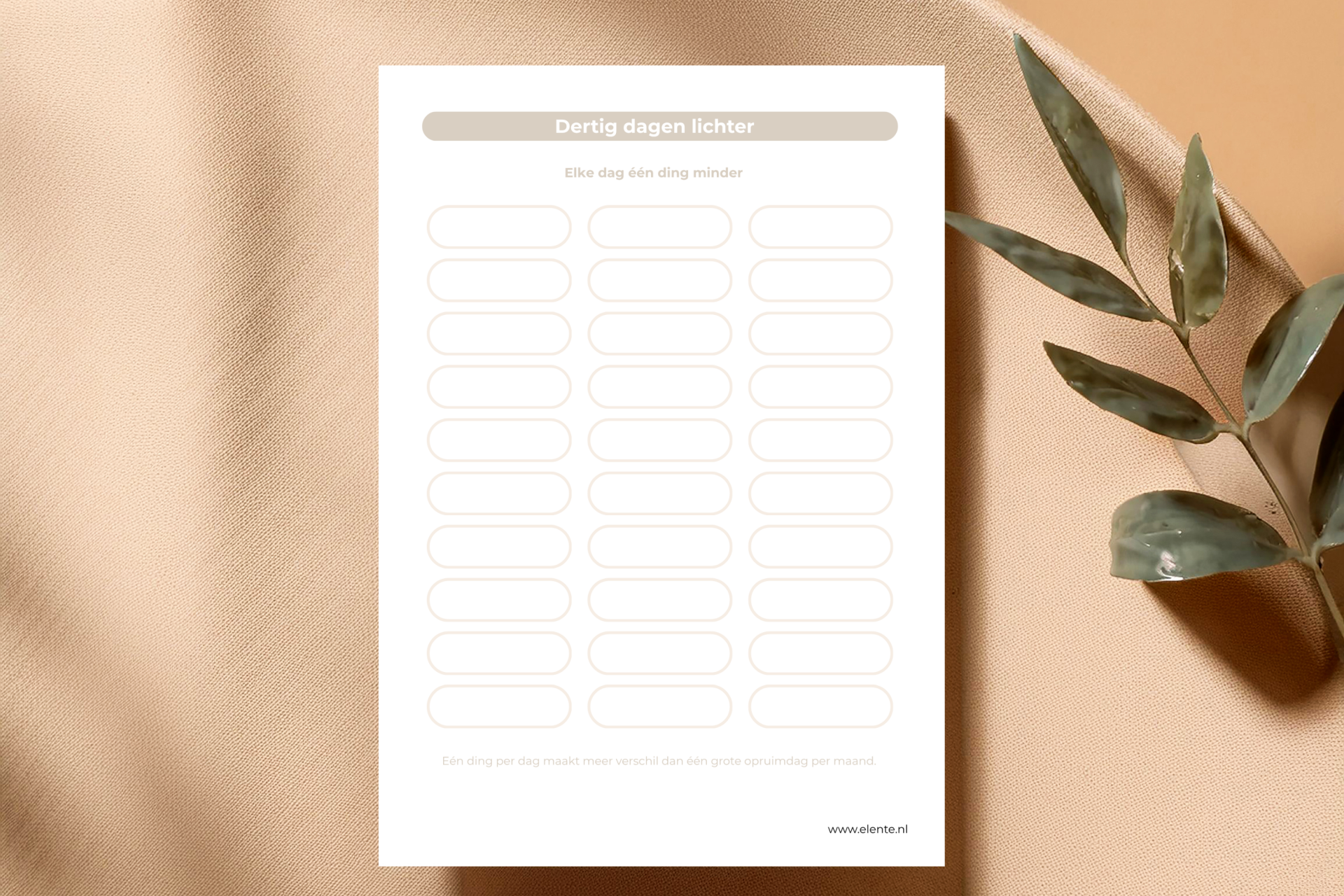 Download ‘m gratis en ontdek hoe één kleine stap per dag al ruimte maakt in huis én in je hoofd. Ik schreef hierbij ook een blog.